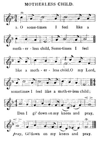 Commonly heard during the Civil rights movement in the United States, “Motherless Child” has many variations and has been recorded widely. Mahalia Jackson has one of the most classic versions: